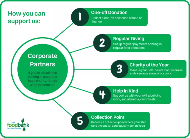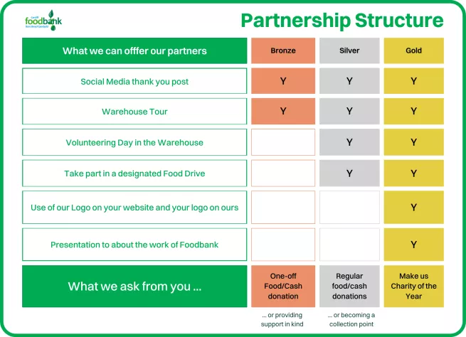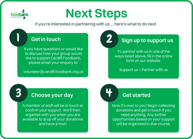 Have we piqued your interest? Here are the next steps to becoming a Partner with Cardiff Foodbank and working together towards a hunger-free Cardiff.